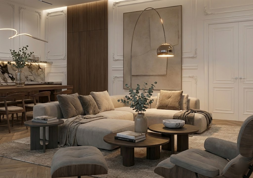 The concept for this 135 m² apartment in the heart of Zagreb was to blend the historic charm of a classic city apartment with a modern, functional lifestyle. Special attention was given to the high ceilings, which enhance the sense of space and airiness, and the open concept layout that seamlessly connects the living room, dining area, and kitchen into a fluid, light-filled environment.